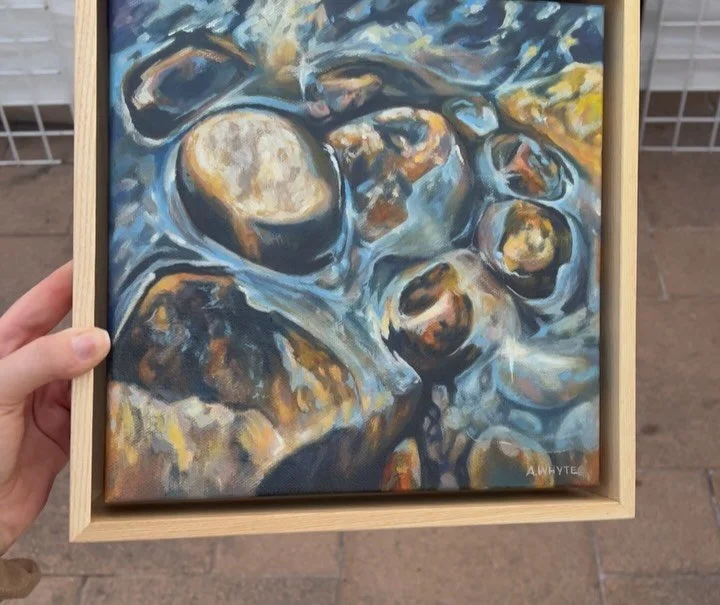 Amanda’s work is inspired by the small, quiet moments found in the natural Canadian landscape. Her paintings live somewhere between abstract and real, while incorporating imagery from rocks, clouds, land and water.