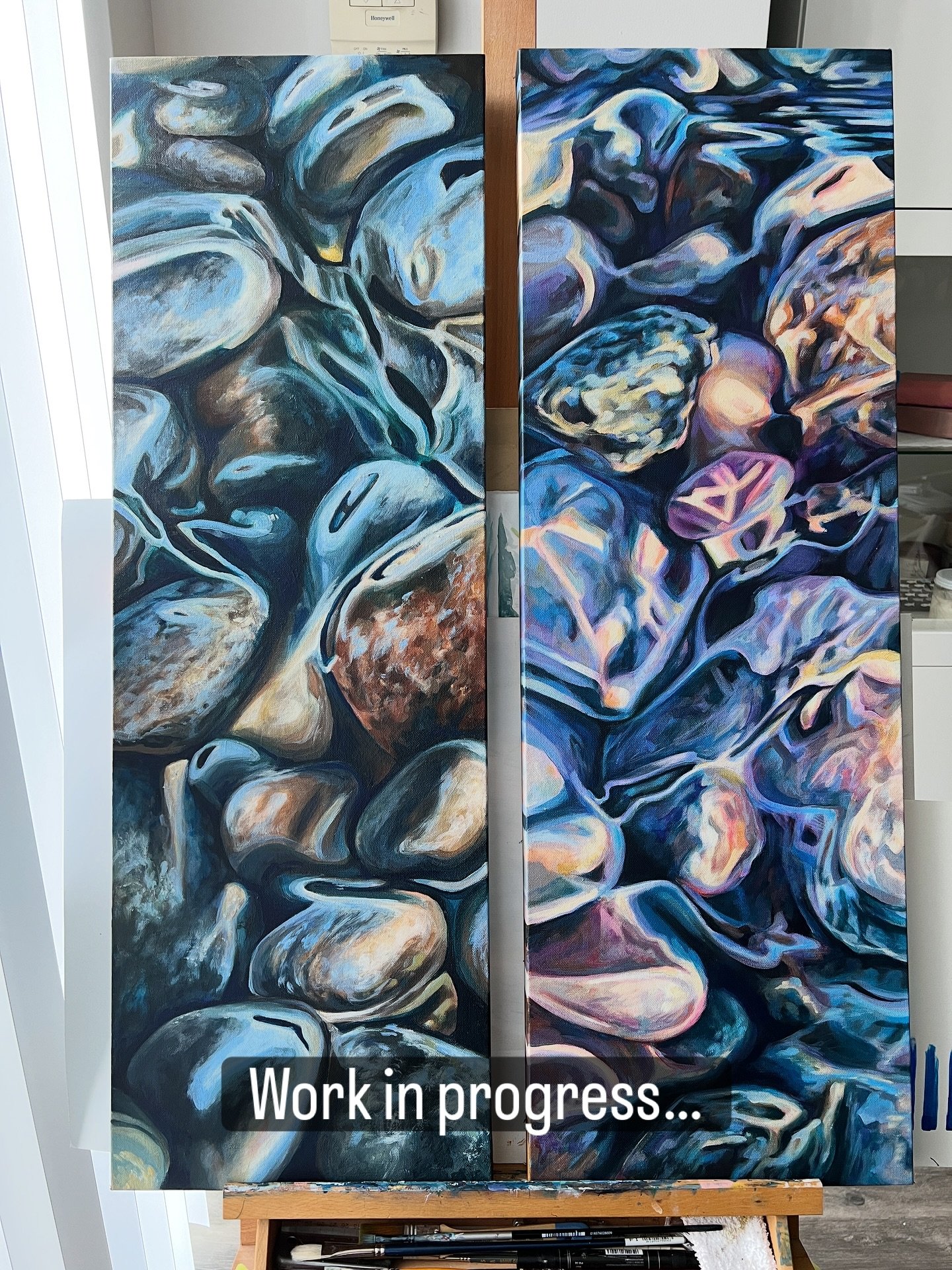 Amanda’s work is inspired by the small, quiet moments found in the natural Canadian landscape. Her paintings live somewhere between abstract and real, while incorporating imagery from rocks, clouds, land and water.